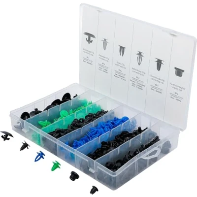 40 moulding clips, to be used as Ford OE 1591426, Opel OE 174864 20 connecting clips, to be used as Opel OE 90218614 50 connecting clips (blue), to be used as Opel OE 2345959, Renault OE 7701053516, Audi OE 7L5853994 50 connecting clips (black), to be used as Opel OE 2240582 40 plastic nuts, to be used as Opel OE 180942 100 push-type clips, to be used as Peugeot OE 7814.24, VW OE N0385501