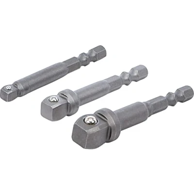 made of chrome vanadium steel adaptor, length 65 mm drive outer square with retaining ball 6.3 mm (1/4") adaptor, length 65 mm drive outer square with retaining ball 10 mm (3/8") adaptor, length 72 mm drive outer square with retaining ball 12.5 mm (1/2"), Weight: 0.220462262 Pounds, Manufacturer: BGS