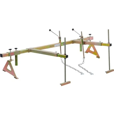 especially suitable for vehicles with auxiliary frame prevents undesired twisting and tilting of the engine 2 positionable longitudinal beams for support on front panel rubber protected front panel support feet positionable 2 hook support | can also be used without longitudinal beams including two chains and shackles, length 530 mm variable width, up to 1500 mm | variable length of longitudinal beams 510 - 845 mm lifting spindle length 340 mm capacity: 315 kg, Weight: 35.27396192 pounds, Manufacturer: BGS