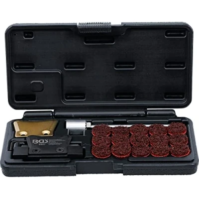 made of chrome vanadium steel for separating of sealed components, e. g. oil pans on engines and gearboxes or other difficult to separate seals additional copper blade prevents damage to e. g. aluminium oil pan sealing surfaces 1 separating tool with replaceable blade 1 replacement copper blade 1 hexagon key wrench, 2.5 mm 1 cleaning adaptor for drill 15 cleaning discs Ø 20 mm, Weight: 0.8598028218 Pounds, Manufacturer: BGS