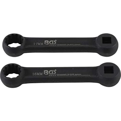 ring spanner, 10 mm (3/8") drive, 12-point profile, 16 mm ring spanner, 10 mm (3/8") drive, 12-point profile, 17 mm suitable for engine mounting on Mercedes-Benz: W220, W210, W203, W221, W211, W204, W124, W140, W170, W126, W201, W202, W210 length: 100 mm, Weight: 0.5952481074 Pounds, Manufacturer: BGS