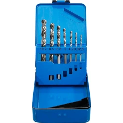 pointed angle: 135° cross cut milled 7 twist drills with core hole sizes 2.5 - 3.3 - 4.2 - 5.0 - 6.8 - 8.5 - 10.2 mm, Manufacturer: BGS