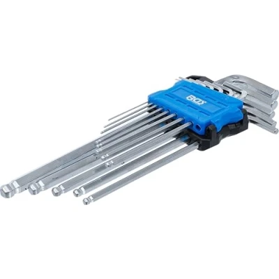 made of chrome vanadium steel | long side with ball point | in foldable holder inch sizes scope of delivery: L-type wrench internal hexagon / internal hexagon with ball point 0.5", blade length (short side): 16 mm, blade length (long side): 80 mm | L-type wrench internal hexagon / internal hexagon with ball point 1/16", blade length (short side): 17 mm, blade length (long side): 90 mm L-type wrench internal hexagon / internal hexagon with ball point 5/64", blade length (short side): 18 mm, blade length (long side): 100 mm | L-type wrench internal hexagon / internal hexagon with ball point 3/32", blade length (short side): 20 mm, blade length (long side): 112 mm | L-type wrench internal hexagon / internal hexagon with ball point 7/64", blade length (short side): 22 mm, blade length (long side): 115 mm | L-type wrench internal hexagon / internal hexagon with ball point 1/8", blade length (short side): 23 mm, blade length (long side): 126 mm L-type wrench internal hexagon / internal hexagon with ball point 9/64", blade length (short side): 25 mm, blade length (long side): 132 mm | L-type wrench internal hexagon / internal hexagon with ball point 5/32", blade length (short side): 26 mm, blade length (long side): 140 mm | L-type wrench internal hexagon / internal hexagon with ball point 3/16", blade length (short side): 29 mm, blade length (long side): 163 mm | L-type wrench internal hexagon / internal hexagon with ball point 7/32", blade length (short side): 34 mm, blade length (long side): 167 mm L-type wrench internal hexagon / internal hexagon with ball point 1/4", blade length (short side): 37 mm, blade length (long side): 182 mm | L-type wrench internal hexagon / internal hexagon with ball point 5/16", blade length (short side): 41 mm, blade length (long side): 205 mm | L-type wrench internal hexagon / internal hexagon with ball point 3/8", blade length (short side): 45 mm, blade length (long side): 230 mm, Weight: 1.1464037624 pounds, Manufacturer: BGS