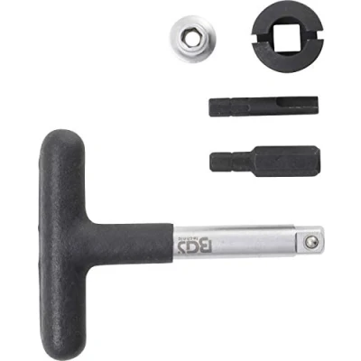 made of chrome vanadium steel special profile inserts with T-handle for manual operation for mounting and dismounting the plastic oil drain plug on plastic oil pans high accuracy of fit for professional oil change suitable for Peugeot, Citroën, Ford, BMW, VAG scope of delivery: 1 T-handle, 10 mm (3/8") drive, length 100 mm | 1 bit holder, 10 mm (3/8") square drive, 6.3 mm (1/4") bits | 1 special socket wrench bit, 10 mm (3/8") drive, for plastic oil drain plugs, suitable for PSA | 1 oil drain plug bit, 6.3 mm (1/4") hexagon drive, for plastic oil drain plugs, suitable for VAG | 1 oil drain plug bit, 6.3 mm (1/4") hexagon drive, for plastic oil drain plugs, suitable for BMW, 10 mm, Weight: 0.6172943336 Pounds, Manufacturer: BGS
