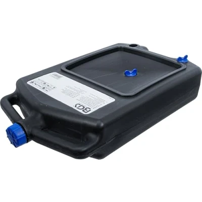 closed construction, special flat type (only 12 cm high) ideal for use in confined spaces special shaped oil basin makes sure no oil will get lost with 3 carrying-handles and 3 openings suitable for oil, petrol, chemicals and antifreeze material: polyethylene (PE)