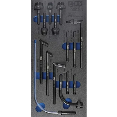 for filling of manual, automatic and DSG transmissions fits on oil filling tools BGS 9991, 9992 includes 15 adaptors, suitable for following models: adaptor 1/8"-27 NPT - Ford | adaptor M10 x 1.0 - VW, Audi, MINI Cooper | adaptor M24 x 1.5 - VW, Audi DSG | Adaptor M22 x 1.5 - VW, Audi CVT | ATF adaptor - VW Passat | adaptor M12 x 1.5 - Mercedes-Benz | adaptor M18 x 1.5 - Skoda | adaptor M30 x 1.5 - Audi, VW, Skoda | adaptor 5/16"-24 UNF - Volvo | adaptor M18 x 1.5 - Toyota, Lexus | adaptor M8 x 1.0 - Nissan, Infinity | universal adaptor (flexible) - Honda, Hyundai, Kia, etc. | universal adaptor - BMW, Honda, Nissan, etc. | adaptor - VW, Audi, Skoda, Seat | adaptor for VW, Audi, Porsche, Weight: 2.80427997264 Pounds, Manufacturer: BGS
