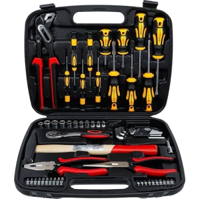 made of chrome vanadium steel scope of delivery: water pump pliers, 245 mm | combination pliers, 180 mm | telephone pliers, 200 mm | machinist's hammer, 300 g socket set, 6.3 mm (1/4") drive: reversible ratchet, finely toothed, 72 teeth, extension bar, external/internal square 6.3 mm (1/4") 50 mm, bit adaptor, 6.3 mm (1/4") drive, internal hexagon 6.3 mm (1/4"), sockets, 6.3 mm (1/4"), satin chrome plated, 4 - 6 - 7 - 8 - 9 - 10 - 11 - 12 - 13 mm bits, 6.3 mm (1/4") drive: bits, slot SL 3 - 4 - 5 - 6 mm, bits, cross slot PH1 - PH2 - PH3, bits, cross slot PZ1 - PZ2 - PZ3, bits, T-Star (for Torx) T10 - T15 - T20 - T25 - T27 - T30, bits, internal hexagon 3 - 4 - 5 - 6 mm screwdrivers: screwdriver slot SL 0.4 x 2.0 x 50 mm - 0.4 x 2.5 x 50 mm - 0.5 x 3.0 x 50 mm - 1.0 x 5.5 x 75 mm - 1.2 x 6.5 x 38 mm - 1.2 x 6.5 x 100 mm screwdriver cross slot PH00 x 50 mm - PH0 x 50 mm - PH1 x 75 mm - PH2 x 38 mm - PH2 x 100 mm bit-holder internal hexagon 6.3 mm (1/4"), 75 mm L-type wrenches internal hexagon 1.5 - 2 - 2.5 - 3 - 4 - 5 - 6 - 8 - 10 mm, Weight: 2.2 pounds, Manufacturer: BGS technic