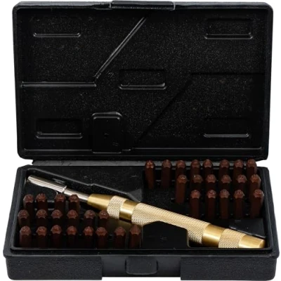 4 mm figures and letters automatic puncher (170 mm), brass made, adjustable striking force with all letters and numbers as well as centre tip for easy marking suitable for aluminum, sheet metal, wood, leather, copper and fiber composites, Manufacturer: BGS Do it yourself
