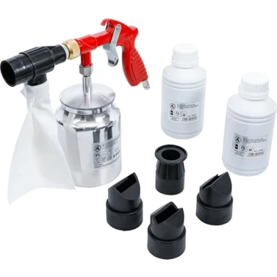 ideal for many applications in the body area and for all metallic surfaces used for removing rust, heavy soiling, varnish, etc. | suitable for use with standard corundum grain sizes of 46 to 100 easy handling | low consumption due to the reuse of the blasting material operating pressure: 6 - 8 bar | max. operating pressure: 8 bar | recommended hose diameter: 9 mm includes the following accessories: jet cap for surfaces | jet caps for inside corners | jet cap for outside corners | spot jet cap | 2 containers with 850 g blasting material each, corundum #60, Weight: 6.172943336 Pounds, Manufacturer: BGS technic