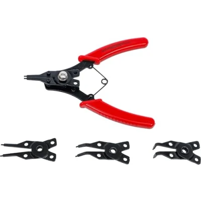 with 4 exchangeable heads for internal and external circlips 1 pliers 160 mm 2 heads, straight (outside and inside) 1 head angled, 45° 1 head angled, 90°, Weight: 0.3968320716 pounds, Manufacturer: BGS technic