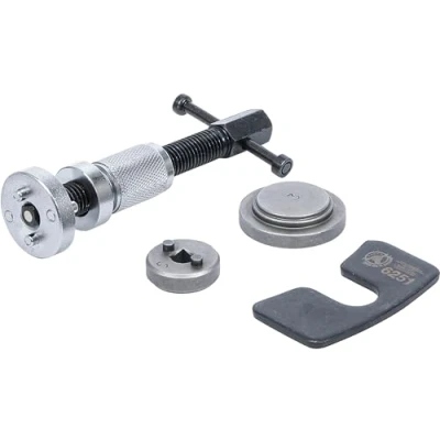 is used to reset the brake piston when changing the brake pad with universal adaptor to be operated with T-handle or external hexagon 19 mm suitable for the following models: Audi: 80, 90, V8S, 100, A2, A3, A4, A6, A8, TT, Quattro | Ford: Ford Sierra (ABS), Granada, Galaxy, Scorpio | Honda: Prelude | Jaguar: XJ4D | MAZDA: 323, 326 | Mitsubishi: Galant GLSi Nissan: Silvia 1 B Turbo | Rover: 800-series | Saab: 9000 | Seat: Ibiza, Toledo, Leon, Arosa, Alhambra | Skoda: Fabia, Octavia, Superb | Subaru: L and Series 2 Toyota: Celica, Corolla GT MR2 | Volvo: 440, 460, 480, S40, V40 | VW: Golf 3, Golf 4, Golf 5, Lupo, New Beetle, Passat, Polo, Sharan, Touareg, Touran, T4, T5, Quattro scope of delivery: pressure plate | combination adaptor | right-handed thread, Weight: 1.6093745126 pounds, Manufacturer: Kraftmann