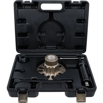 for extracting drive shafts from wheel hubs especially for glued and rusty drive shafts fits on 4- and 5-hole hubs with hole circle diameter of 98 to 125 mm for wheel bolt sizes up to M14 applicable for VW, Audi, Seat, Skoda, Opel / Vauxhall, Volvo, Fiat, Renault, Peugeot, Citroen, etc. capacity of hydraulic ram: 10 to. puller feet, internal thread 1-1/2â"x16-UN hydraulic spindle, 10 t, internal thread 1-1/2â"x16-UN extractor spindle, manual, external hexagon 19 mm, internal thread 11/16â"x10-UN thread reducer, internal thread 1-1/2â"x16-UN to 11/16â"x10-UN, Manufacturer: BGS Do it yourself