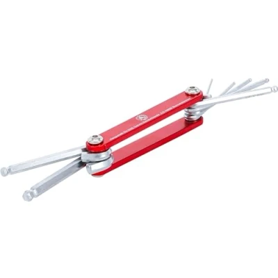 made of chrome vanadium steel with ball heads for hard to reach places satin chrome internal hexagon wrenches internal hexagon with ball point 1.5 - 2 - 2.5 - 3 - 4 - 5 - 6 mm in red anodised aluminium foldable holder profile: internal hexagon ball point length: 99 mm | width: 32 mm | height: 19 mm, Weight: 0.0220462262 Pounds, Manufacturer: BGS technic