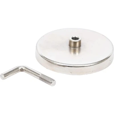 with inserted magnet in steel pot metal housing avoids damages to the magnet and strengthens the holding power hook is screwed in existing thread on the backside of magnet plate dimensions hook: 35 x 20 mm material strength: 4 mm material strength ground plate with inserted magnet: 7 mm rated load capacity: 10 kg | surface finish: nickel plated, Manufacturer: Kraftmann