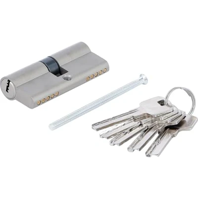 solid cylinder housing | has a large number of robust security functions can be used for indoor and outdoor areas | suitable for all door types such as timber, metal and PVC doors can be locked from both sides | with 5 keys cylinder length: 70 mm | size: 35/35 mm | material: brass core with brass case | surface finish: satin chrome plated scope of delivery: 1 security cylinder lock, 70 mm | 1 fixing screw 85 mm | 5 keys, Weight: 0.5532720927152 Pounds, Manufacturer: BGS Do it yourself