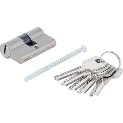 solid cylinder housing | has a large number of robust security functions can be used for indoor and outdoor areas | suitable for all door types such as timber, metal and PVC doors can be locked from both sides | with 5 keys cylinder length: 50 mm | size: 25/25 mm | material: brass core with brass case | surface finish: satin chrome plated scope of delivery: 1 security cylinder lock, 50 mm | 1 fixing screw 85 mm | 5 keys, Weight: 0.43210603352 Pounds, Manufacturer: BGS Do it yourself