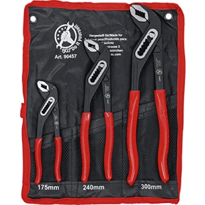 made of chrome vanadium steel safety handles | forged | hardened | black painted polished jaws and joint | red PVC dipped handles box-joint type | packed in a tetron wallet scope of delivery: waterpump pliers 175 mm, aperture max. width: 27 mm | waterpump pliers 250 mm, aperture max. width: 38 mm | waterpump pliers 300 mm, aperture max. width: 44 mm, Weight: 2.9101018584 pounds, Manufacturer: BGS Do it yourself