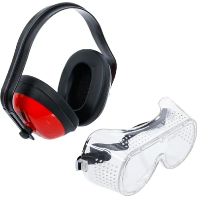 is not only suitable for your construction site, gardening but also for other noise situations | ideal initial equipment for versatile work in the do-it-yourself sector can be worn in combination to ensure safe basic protection for eyes and ears dust goggles protect the eyes from splinters, chips, flying sparks, sanding particles and dust | the goggles can be individually adjusted to the person using the elastic rubber strap overhead earmuffs protect the ears from loud noises | normal communication is possible as only excessively loud sounds are filtered out high wearing comfort thanks to adjustable temples | DIN: EN352 | EN166, Weight: 0.4850169764 Pounds, Manufacturer: BGS Do it yourself
