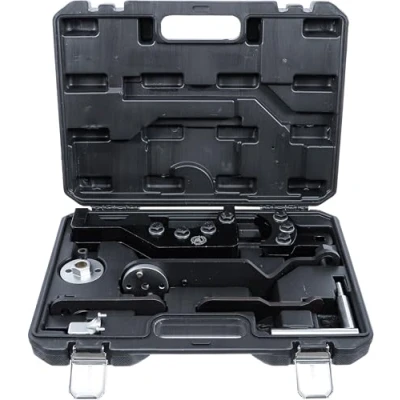 suitable for the following models: VW T5 as of 2004, Touareg as of 2003, VW Phaeton as of 2003 with 5 and 10-cylinder engines camshaft locking tool for testing and setting control times on 5 and 10-cylinder engines, to be used as OEM T10193 camshaft locking tool for testing and setting control times on 10-cylinder engines, to be used as OEM T10194 clamping device for removing and installing the camshaft guide of 5 and 10-cylinder engines, to be used as OEM T10199 special insert, enables turning of the crankshaft on 5-cylinder engines, to be used as OEM T10225 crankshaft locking key for 5-cylinder engines, to be used as OEM T10226 tensioner wrench, Manufacturer: BGS technic