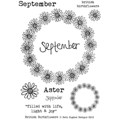 British Birthflowers September Designed by Beth Hughes. Easy to align for precision stamping. Sticky back for direct mounting onto acrylic blocks. Can be used stored and reapplied many times. Size A6 RI1213 CICSA6167 CICSA6167 MPN RI1213