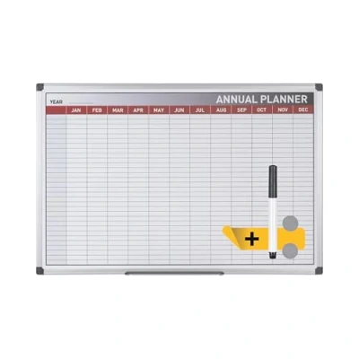 Bi office Annual Magnetic Whiteboard Planner Aluminium Frame 900x600mm