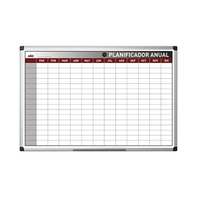 Planner in Spanish. Easy plan of the year in advance by showing parties, events and meetings. High quality magnetic dry erase surface for easy writing and cleaning. 16 rows to show the whole year. Supplied with marker tray, for pens, magnets and wall mounting kit.