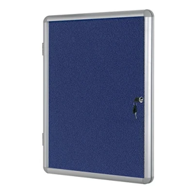 Strong, secure and lightweight solution; Blue felt surface can be used with pins and velcro; Strong acrylic door gives superior visibility to displayed material; Usable internal depth: 18mm; Total depth: 35mm; Lockable and supplied with 2 keys.