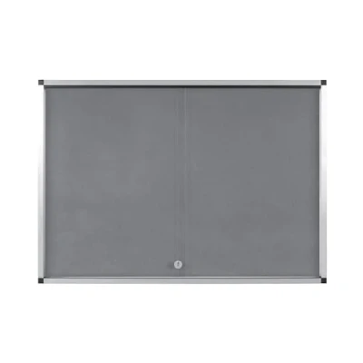 Bi Office Exhibit Extra Pinnable Display Case, 6xA4, Grey Felt Surface, Glass Door, Aluminium Frame