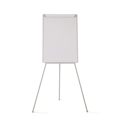 Portable easel with non-magnetic surface Light grey pastic frame Lightheight, easy to assemble and adjustable height Adjustable flip pad clamp, to use with any flipchart pad Full lenght pen tray
