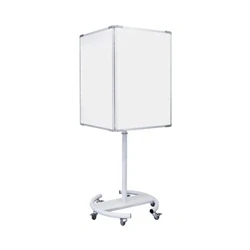 High-quality drywipe magnetic lacquered steel surface. Extreme versatile product with four whiteboards on a rotating mobile structure. Large communication area for the floor space that it occupies.