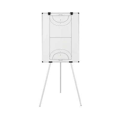 Magnetic whiteboard for use with markers and player magnets Portable tripod easel structure for on-the-go strategy sessions Durable, dry wipe lacquered steel surface Ideal for training centers, sports clubs, schools, and tactical planning areas Ability to write, draw, erase, and redo play formations with ease Versatile for horizontal or vertical orientation Offers flexibility and mobility, suitable for non-wall-mounted spaces Comes with an attached tray to hold markers and magnets Essential tool for dynamic and interactive coaching Sports pitch printed design for effective strategy planning