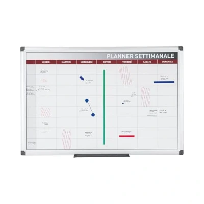 Weekly planner in Italian High quality dry wipe magnetic surface Easy to write and clean Classic aluminium frame, 20 mm Supplied with a marker, pencil tray, magnets and wall mounting kit