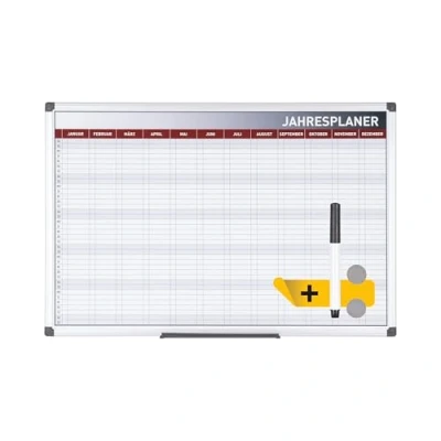 Aluminium frame Ideal for securing the Ganzjährliche of tasks, holidays and events in small Company Top quality, magnetic drywipe surface Easy to write on/and clean Year Planner comes complete with marker pens, pen shelf, magnets and wall mounting kit