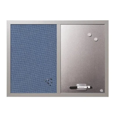 22mm MDF frame with pearl coating 60x45cm blue fabric notice board For use with pushpins Easy to hang on any wall Supplied with 6 pushpins and wall fixings