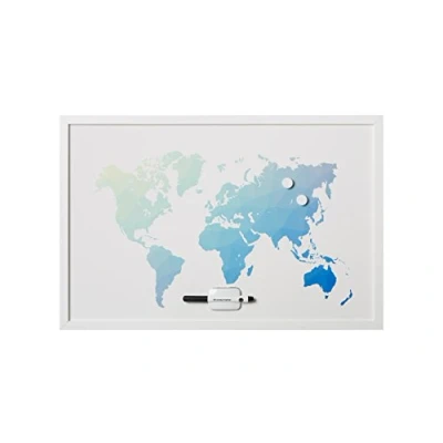 INSPIRATIONAL: It’s your home or office and this board will definitely make your style stand out! ALL ABOUT THE DETAILS: Plan your next adventure with this dry erase board: the printed world map and the solid white frame are clean and simple elements that will surely inspire your next trip! PERFORMANCE & STYLE COMBINED: With an excellent writing surface, this magnetic dry erase world map board is a great way to reflect the free spirit of a travel lover! EASY TO MOUNT: Easy installation with wall fixing kit included. COMPLETE SOLUTION: Don't worry about a thing - all accessories are included: dry erase marker, magnetic eraser, 2 magnets & wall fixing kit.