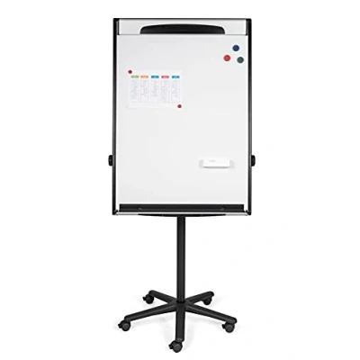 EurofficeHigh quality lacquered steel magnetic surface. Adjustable clamp for standard flipchart pads. Full portable with a 5 star castor base. 2 magnetic extension arms for displaying up to 3 sheets at once.