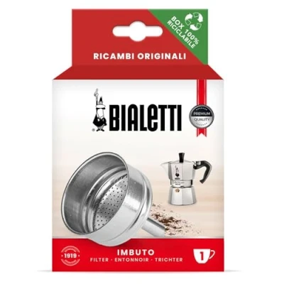 Bialetti replacement parts are made to ensure the quality and perfect operation of your Bialetti coffee maker over time. This package includes an aluminium funnel filter. Funnel filter suitable for Bialetti 1 cup coffee makers model: Moka Express, Fiammetta, Break, Happy, Dama, Mini Express and Rainbow. Included in the package: one funnel filter.