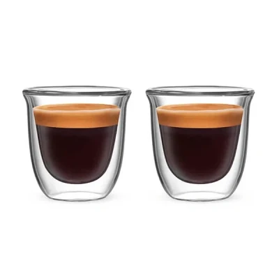 Harts of SturThe Bialetti Firenze Double Walled Set of 2 Espresso Glasses are ideal for serving your favourite fresh espresso.Made from high quality borosilicate glass these double walled glasses keep your coffee hotter for longer.The gorgeous glasses show off the rich and smooth cream on the top of your espresso and stay cool to the touch preventing burns and also free from condensation when placing on delicate surfaces. Dishwasher safe for easy and convenient cleaning.Each of the glass mugs has a capacity of 80ml.