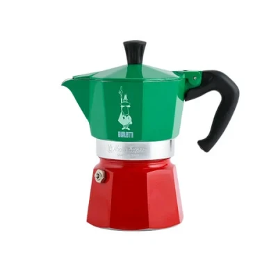 Crafted from high-quality aluminium, the "Moka Express Italia" combines functionality with aesthetic charm. It is available in various sizes, with this particular model catering to three cups, equating to 130 ml of rich, aromatic coffee. The pot showcases the vibrant colours of the Italian flag, making it not only a coffee maker but also a tribute to Italy’s renowned coffee culture. The ergonomic handle and thermoplastic knob ensure a comfortable grip and safety while brewing.