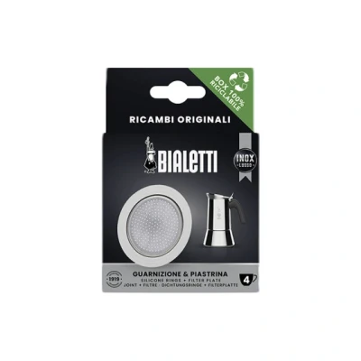 "Bialetti" moka pots can last a lifetime, but the one part that does wear out is the gasket—the rubber ring that ensures a tight seal between the top and the bottom. This handy pack provides you with 1 replacement gasket as well as 1 replacement filter plate to give your moka pot new life.- Compatible with "Bialetti" stainless steel 4-cup moka pots- Includes 1 replacement gasket and 1 replacement filter- Made from white rubber and stainless steel