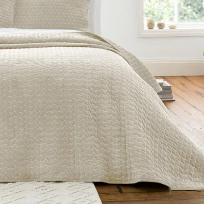 Bianca Attica Velvet Embroidered 240x260cm Bedspread Natural