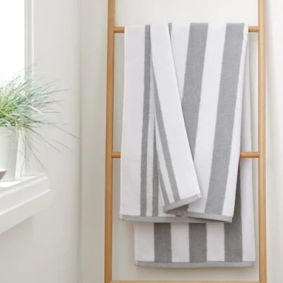 Bianca Reversible Stripe 50x85cm Cotton Jacquard Hand Towel Grey