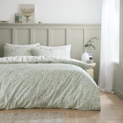 Bianca Scallop Floral 200 Thread Count Cotton Percale Reversible Single Duvet Cover Set with Pillowcase Green