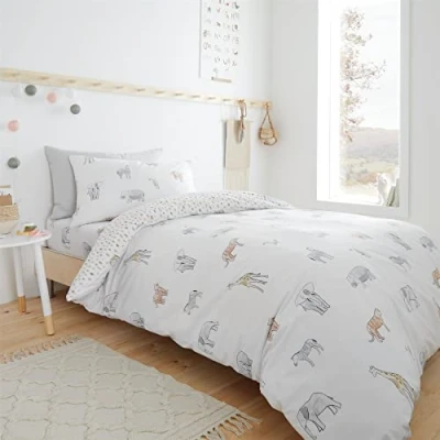 Bianca Zoo Animals Double Cotton Duvet Cover Set with Pillowcases White