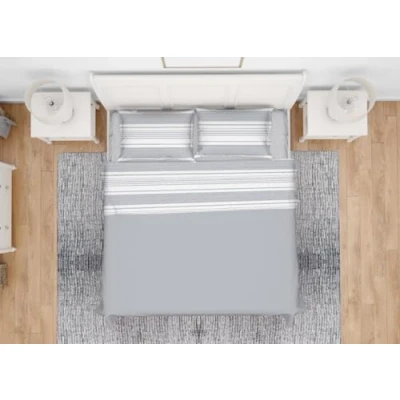 BED SHEET SET - The double bed set includes a drawstring top sheet 250x300 cm, a fitted sheet (elastic) 180x200 cm + 25 cm and two pillow cases with side buttons 50x80 cm. The sheets have a modern and elegant grey and white striped pattern. Wrapper softness: Let yourself be enveloped by the freshness of the double bed sheet set, ideal for warm summer and spring nights! Lightweight materials will allow you to sleep in the cool, wrapped in soft and high-quality fabrics. QUALITY FABRIC - The double bed sheet set is 100% fresh and fluffy cotton for you to rest without worry. The high-quality manufacture of cotton sheets excludes the use of synthetic and rough materials, and is finished to the smallest detail in an accurate manner. The set is Oeko-Tex certified and complies with Reach compliance. 100% MADE IN ITALY - The double bed linen set is made entirely in Italy with high quality materials. The modern and elegant design fits perfectly in any room and adds a touch of style to the environment. WASHING INSTRUCTIONS - The matching bed is machine washable at 40°C and can be ironed at low temperatures. The bright and vibrant colours are very solid and durable even after numerous washes. Bleaching is not allowed.