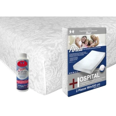 Protect your mattress. The Elegance Jacquard Terry Stretch Double Mattress Protector is ideal for protecting your mattress. You can rest in a fluffy bed without worries MAXI CORNERS - Mattress protector particularly elastic and with maxi corners to make it suitable for any type of mattress Jacquard terry – the Elegance mattress protector is made of jacquard fabric with exclusive floral processing, a very soft fabric that is cool and perfect for summer and warm for winter Does not iron - the double mattress protector does not require ironing and excellent workmanship prevents the formation of the usual boring creases. The Elegance mattress protector is machine washed at 60 degrees and bleach is not allowed Measurements and material – the package includes the double mattress cover for double bed for mattresses from 160 x 190 to 180 x 200 cm + maxi corner edge of 27 cm high. The quality of the mattress protector (50% cotton-50% polyester) double bed is reflected in a pleasant design to look and feel with floral workmanship