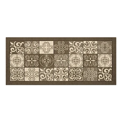 BIANCHERIAWEB Washable Non Slip Kitchen Mat, Runner 55 x 280 cm, Made in Italy Rug with Majolica Design Mud Colour, and Iron