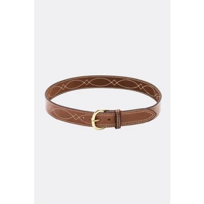 Our belts run small, it is recommended you order two sizes up Full grain leather with natural oil tan finish Suede lining Fancy stitch design Solid brass buckle