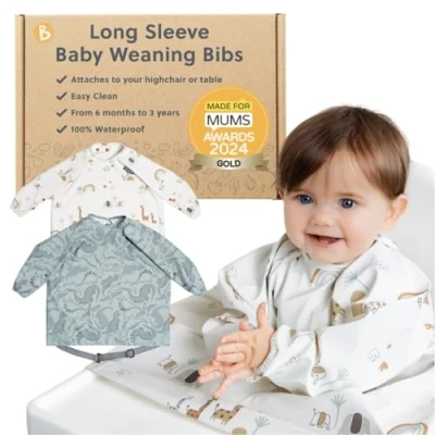 BIBaDO Long Sleeve Baby Bibs Babies & Toddlers 6 36 Months Coverall Weaning Bib Easy Wipe Clean Soft Fabric Attach to Highchair Tables Waterproof Machine Washable Gifts