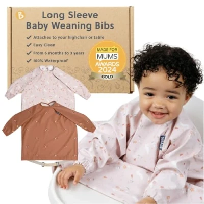BIBaDO Long Sleeve Baby Bibs Toddlers 6 36 Months Coverall Weaning Bib Easy Wipe Clean & Soft Fabric Attach to Highchair Tables Waterproof Machine Washable Gifts